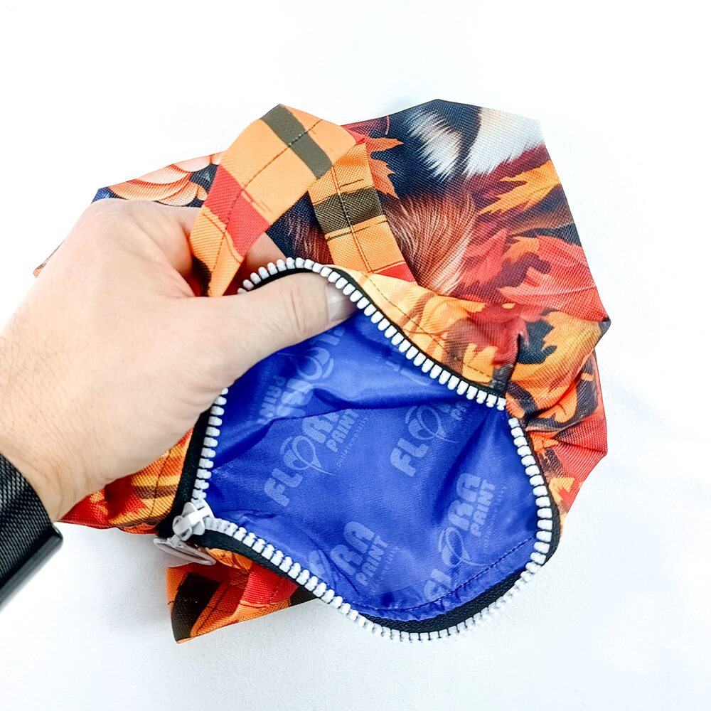 Jednoduchá kozmetická taštička s krásnou potlačou pre kozmetiku a iné drobnosti. Vyrobili sme ju sublimačnou potlačou z polyesterovej  látky – kočárkovina a precízne ušili. Dizajn a grafika je autorským dielom. Z vnútornej strany je tenká podšívka, nevystužená. Taštička má uzatvárateľný zips na vrchu. Pre lepšiu manipuláciu ma aj ušká a je vhodná na doma aj na cesty. Keď je prázdna ľahko sa poskladá a nezaberá veľa miesta. Ma jedno vrecko.