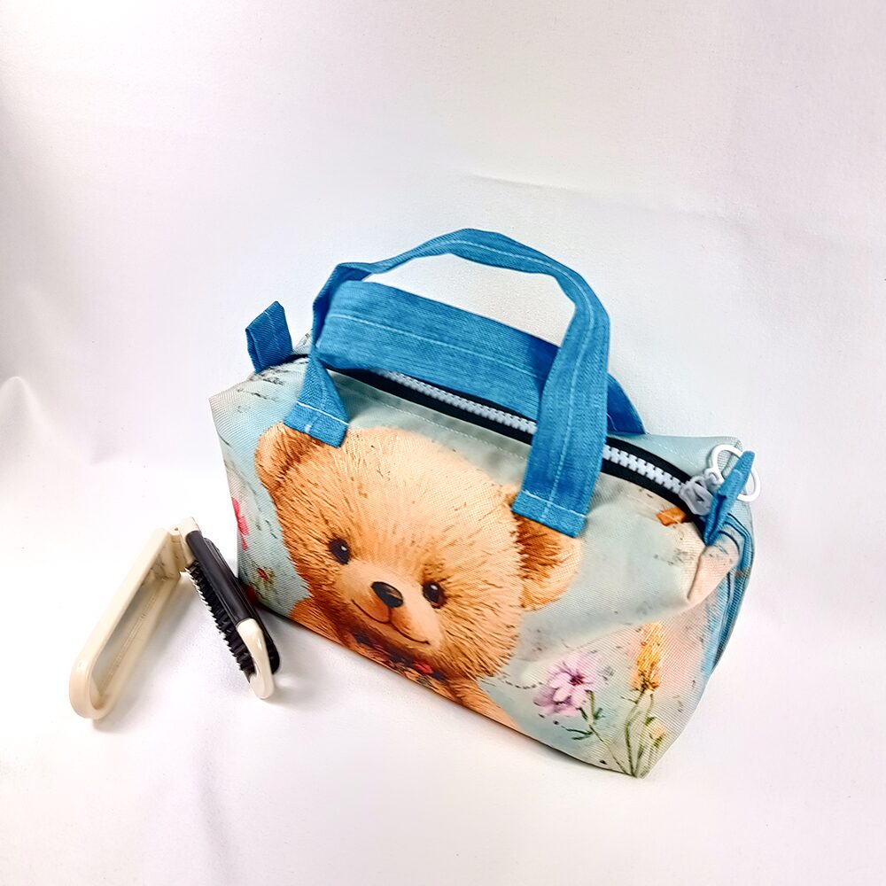 Jednoduchá kozmetická taštička s krásnou potlačou pre kozmetiku a iné drobnosti. Vyrobili sme ju sublimačnou potlačou z polyesterovej látky – kočárkovina a precízne ušili. Dizajn a grafika je autorským dielom. Z vnútornej strany je tenká podšívka, nevystužená. Taštička má uzatvárateľný zips na vrchu. Pre lepšiu manipuláciu ma aj ušká a je vhodná na doma aj na cesty. Keď je prázdna ľahko sa poskladá a nezaberá veľa miesta. Ma jedno vrecko.