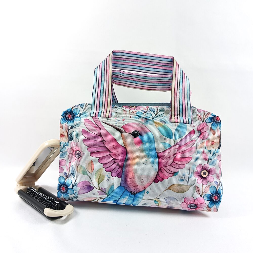 Kozmetická taštička – Ružový kolibrík medzi kvetmi