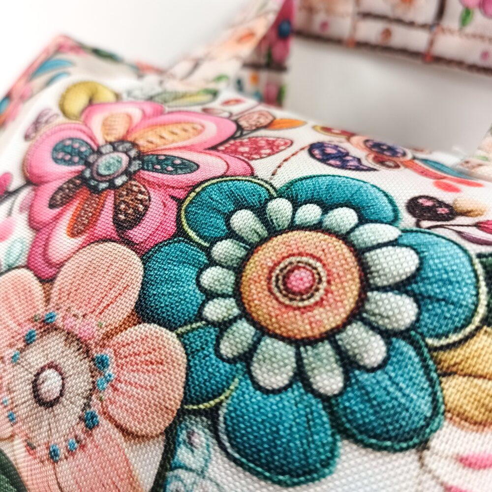 Jednoduchá kozmetická taštička s krásnou potlačou pre kozmetiku a iné drobnosti. Vyrobili sme ju sublimačnou potlačou z polyesterovej  látky – kočárkovina a precízne ušili. Dizajn a grafika je autorským dielom. Z vnútornej strany je tenká podšívka, nevystužená. Taštička má uzatvárateľný zips na vrchu. Pre lepšiu manipuláciu ma aj ušká a je vhodná na doma aj na cesty. Keď je prázdna ľahko sa poskladá a nezaberá veľa miesta. Ma jedno vrecko.