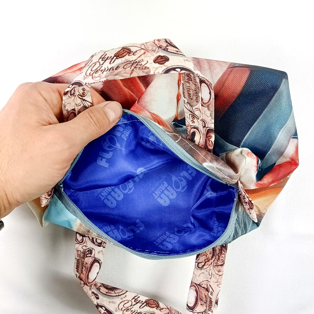 Jednoduchá kozmetická taštička s krásnou potlačou pre kozmetiku a iné drobnosti. Vyrobili sme ju sublimačnou potlačou z polyesterovej  látky – kočárkovina a precízne ušili. Dizajn a grafika je autorským dielom. Z vnútornej strany je tenká podšívka, nevystužená. Taštička má uzatvárateľný zips na vrchu. Pre lepšiu manipuláciu ma aj ušká a je vhodná na doma aj na cesty. Keď je prázdna ľahko sa poskladá a nezaberá veľa miesta. Ma jedno vrecko.